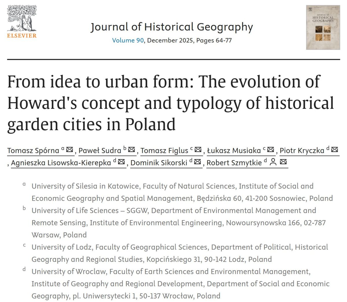 Publikacja współautorska dr. Pawła Sudry z KKŚiT w czasopiśmie Journal of Historical Geography (140 pkt MNiSW, IF 1,1)